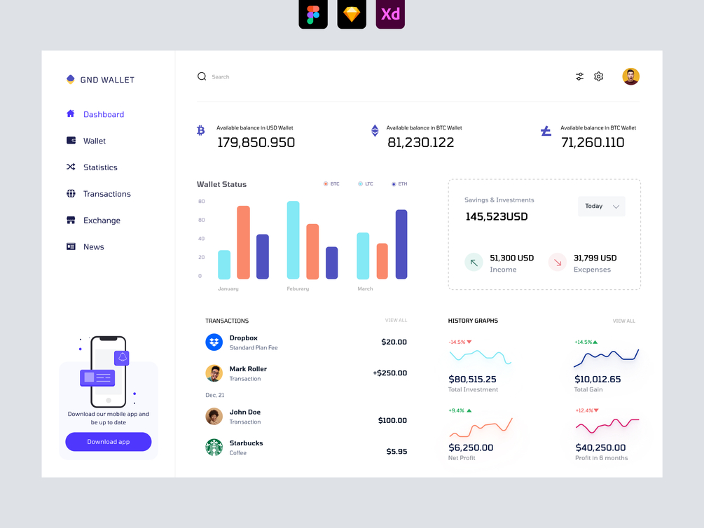 Presenting a dashboard UI concept for Cryptocurrency Dashboard UI. Use this dashboard to speed up your workflow. It's just $10, less than a cup of great coffee.