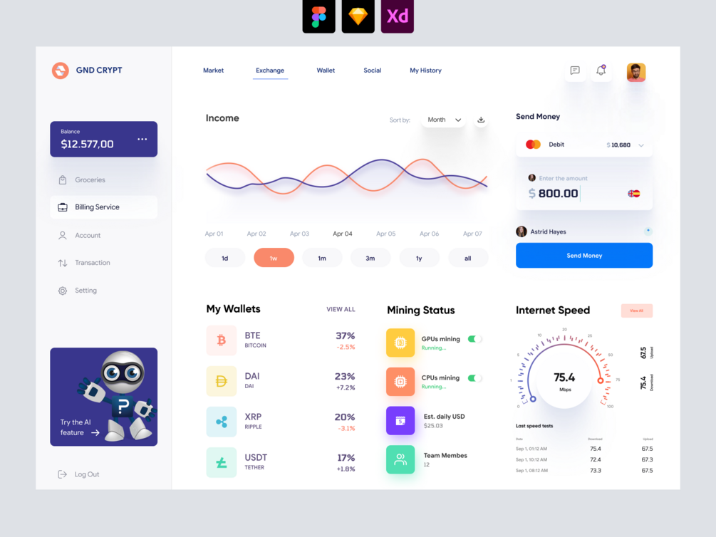 1 Dashboard screen in Figma, Sketch and Adobe XD