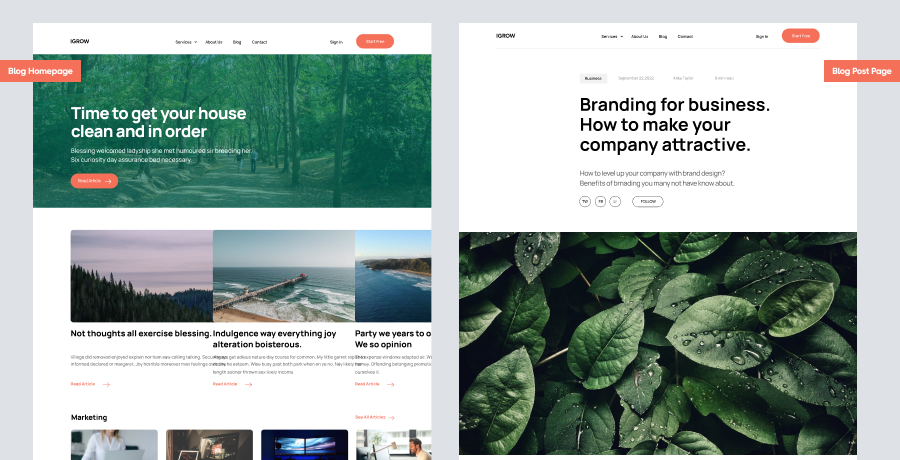 IGrow - HTML (14 pages) + Figma & Adobe XD template (8 pages)