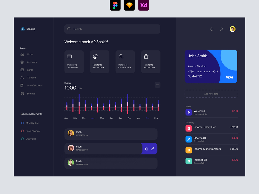 Banking Dashboard UI - Dark UI